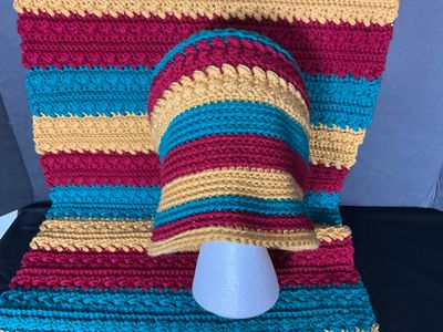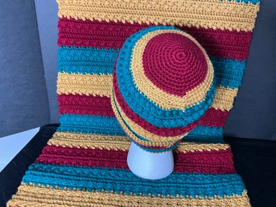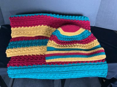 Product details for Beanie and matching wrap.