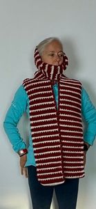 Crochet wheat stick scarf, acrylic yarn. Has a solid neck and attached scarf. Adult size.